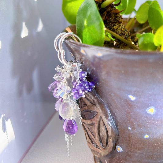 Amethyst labradorite gemstone earring in sterling silver, mini hoop with amethyst, Labradorite, statement chandelier cluster earrings
