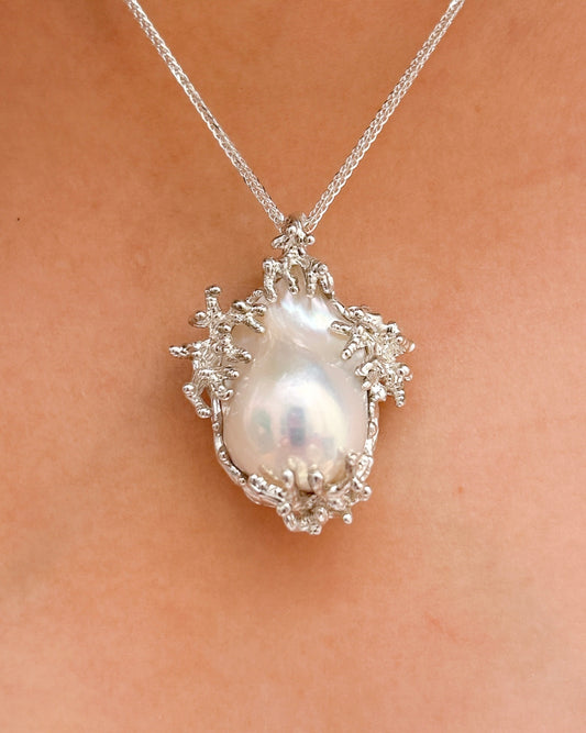 baroque pearl pendant, an exclusive flame ball cultured pearl necklace with artisan sterling silver branches