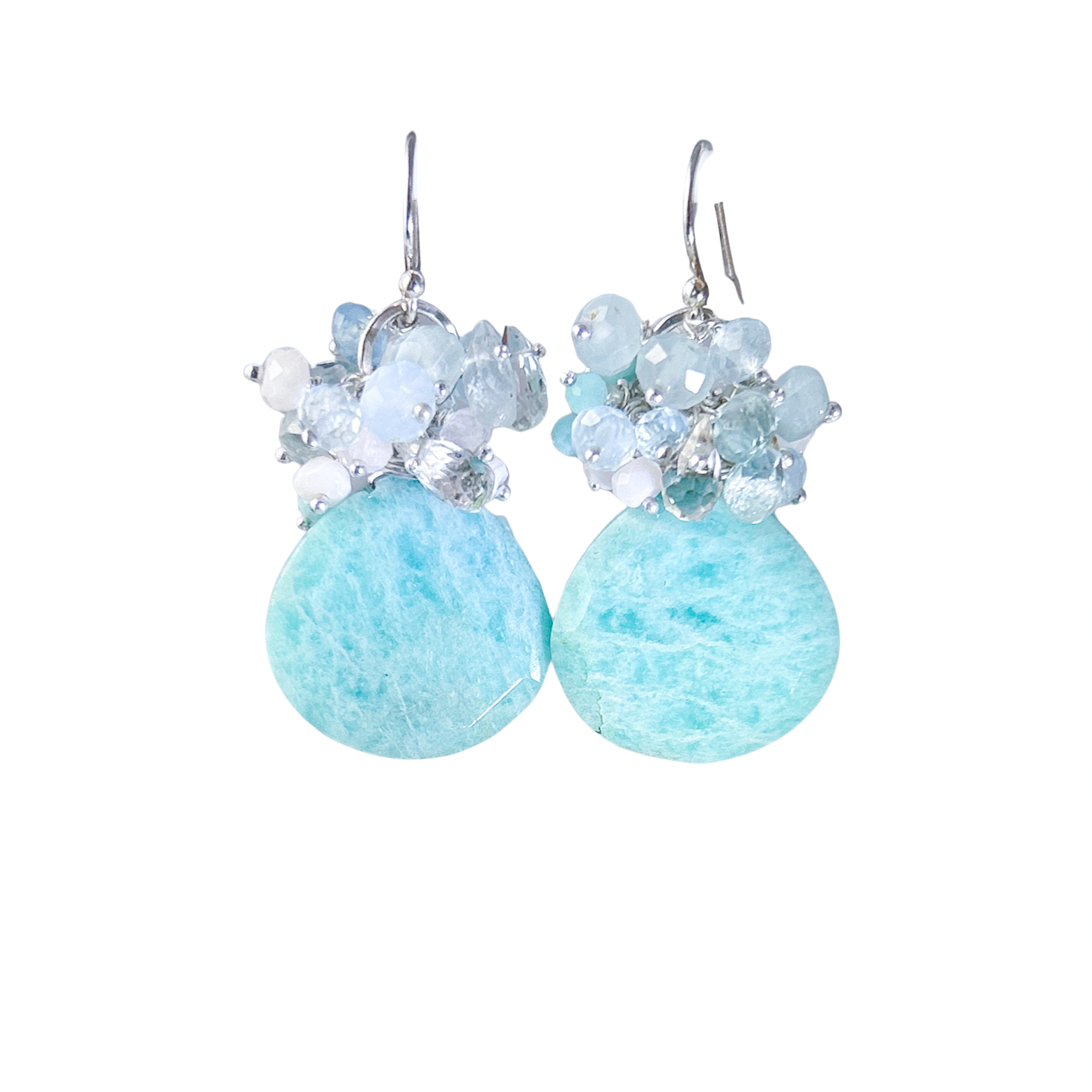 Amazonite earrings, mint gemstone cluster w pink opal, amazonite, teal apatite