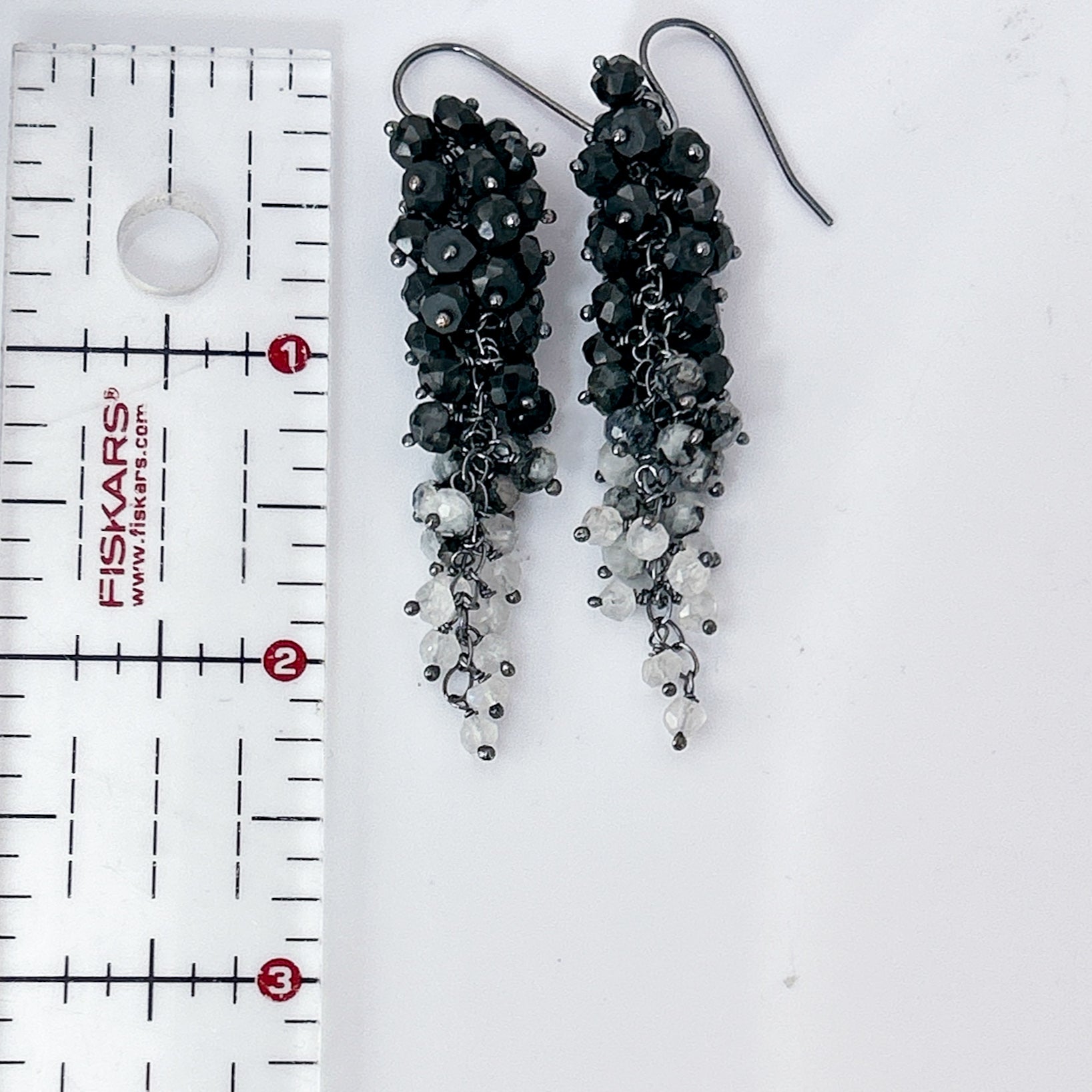 Black white gemstone cluster earring, long dangle earring cascade earring with natural black spinel, moonstones waterfall chandelier earrings.