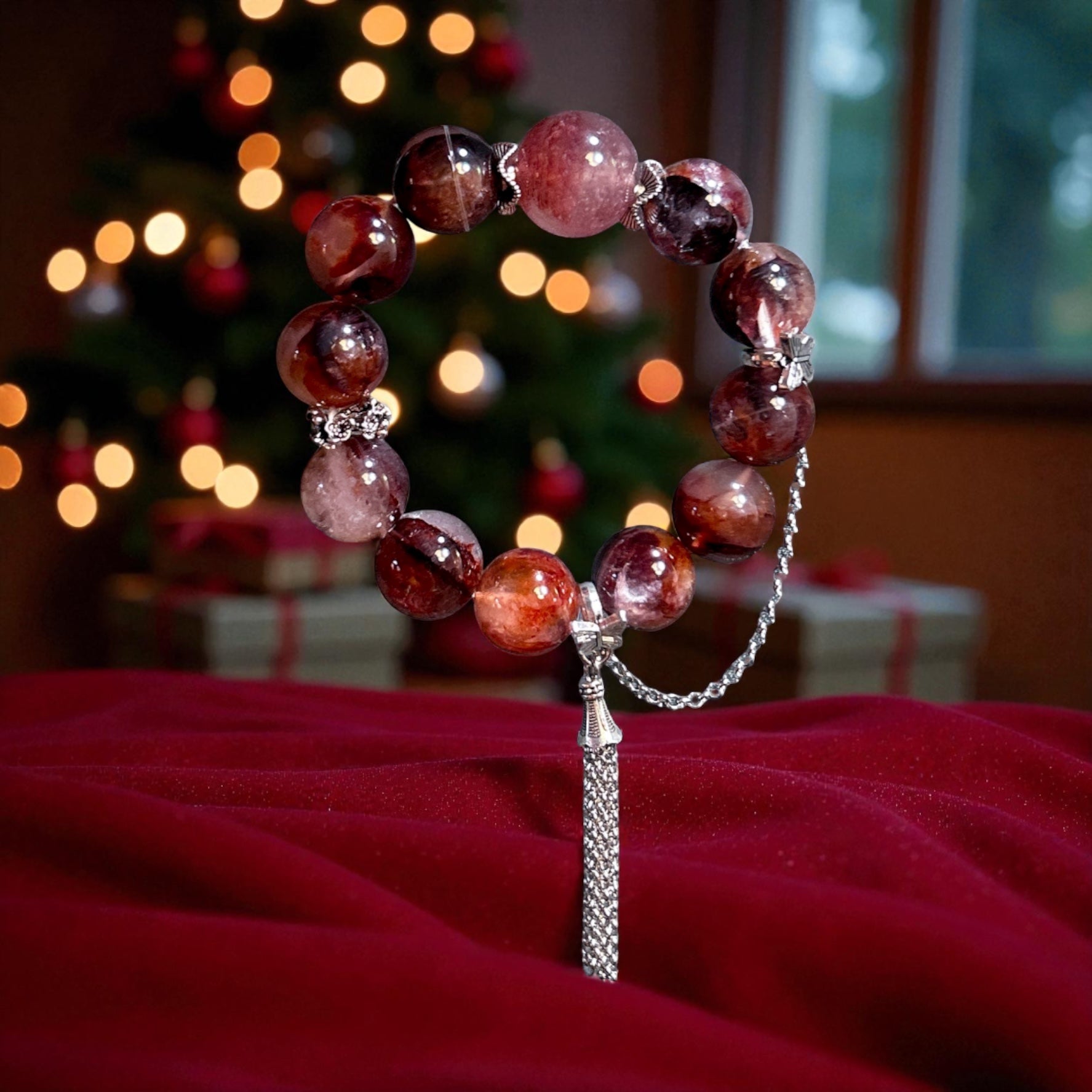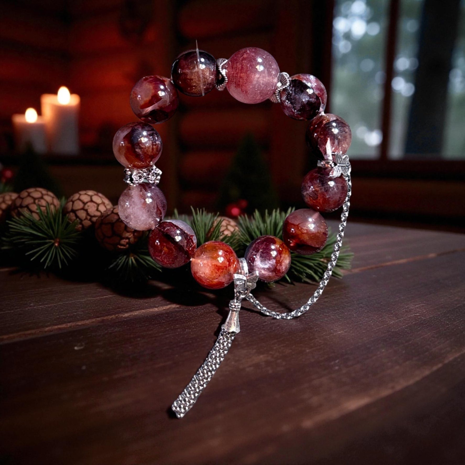 Red fire quartz stretch bracelet, 14MM huge hematoid quartz. Hand selected high quality gemstone bracelet for the red holiday outfit.