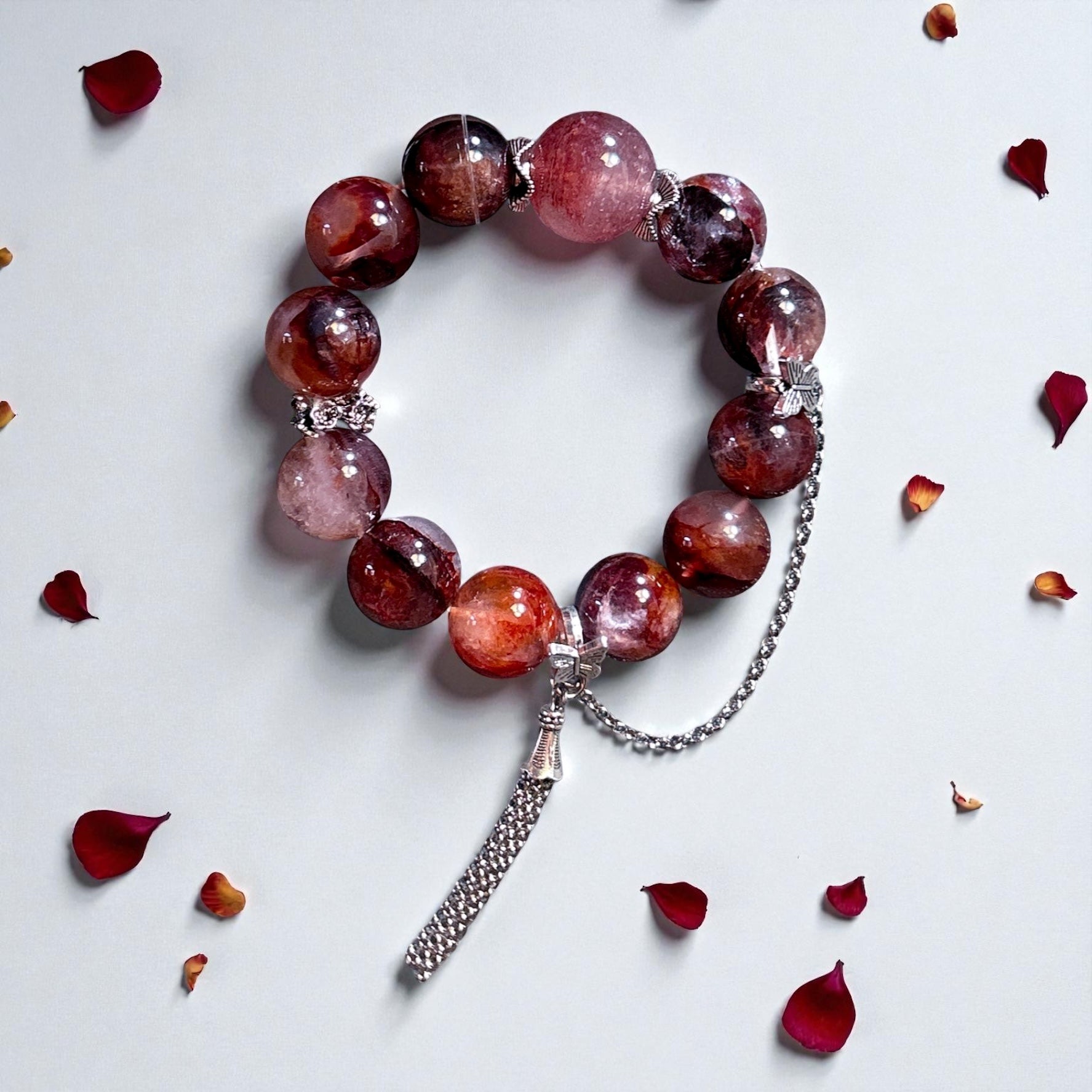 Hematoid quartz: red fire quartz, healing, Focusing, balancing, is a grounding stone associated with focus and emotional clarity.