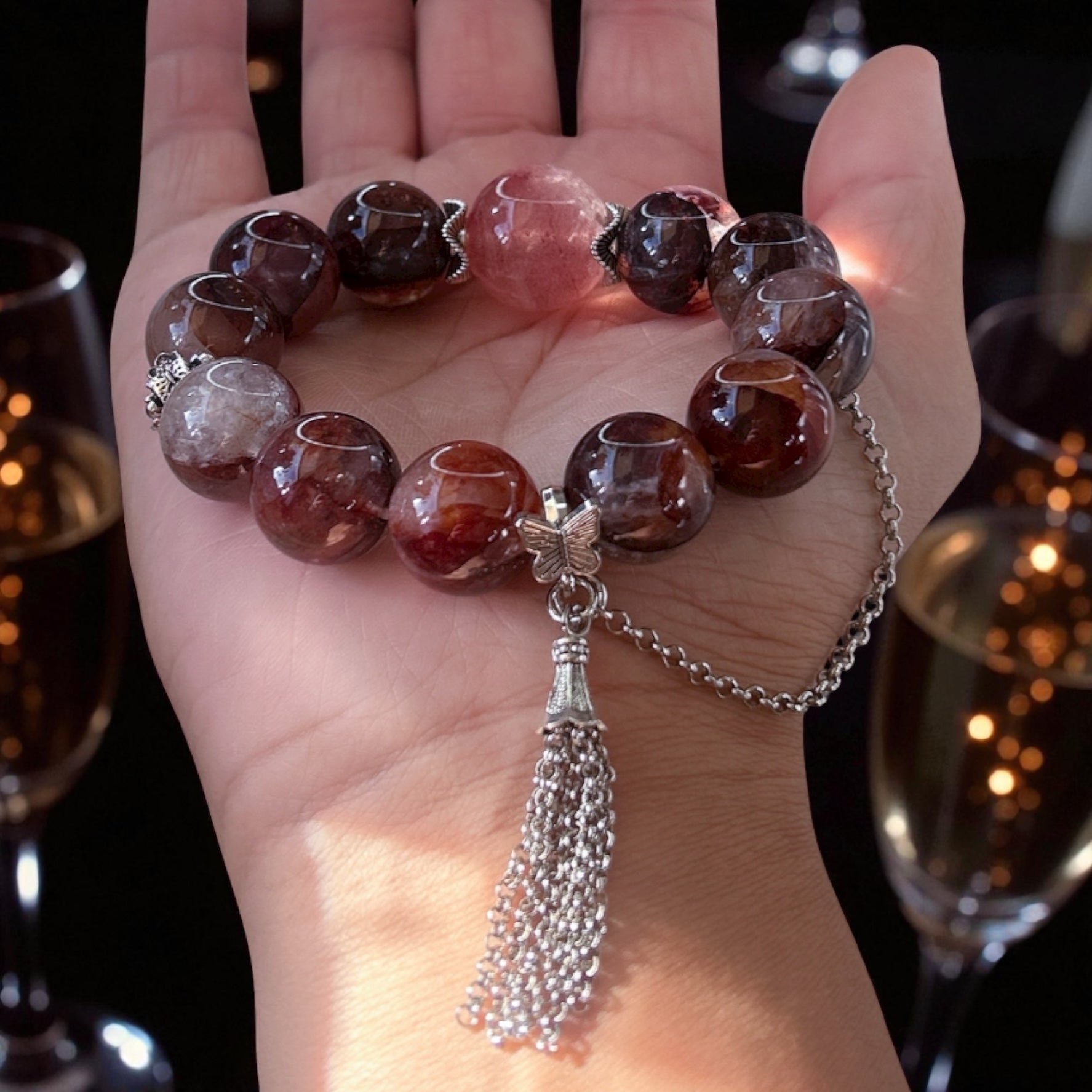Gemstone: 14mm hematoid quartz, 17-18MM strawberry quartz.